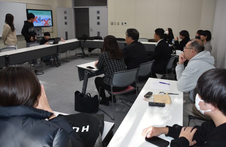 授業は4グループに分かれて「新舞子マリンパークに冬に人を集めるブランディングを考える」というテーマに取り組み。座学でブランディングについて学んだ後、現地視察や中間プレゼンテーションで構想を練り上げていただき、令和8年1月7日に最終のプレゼンテーションが行われました。