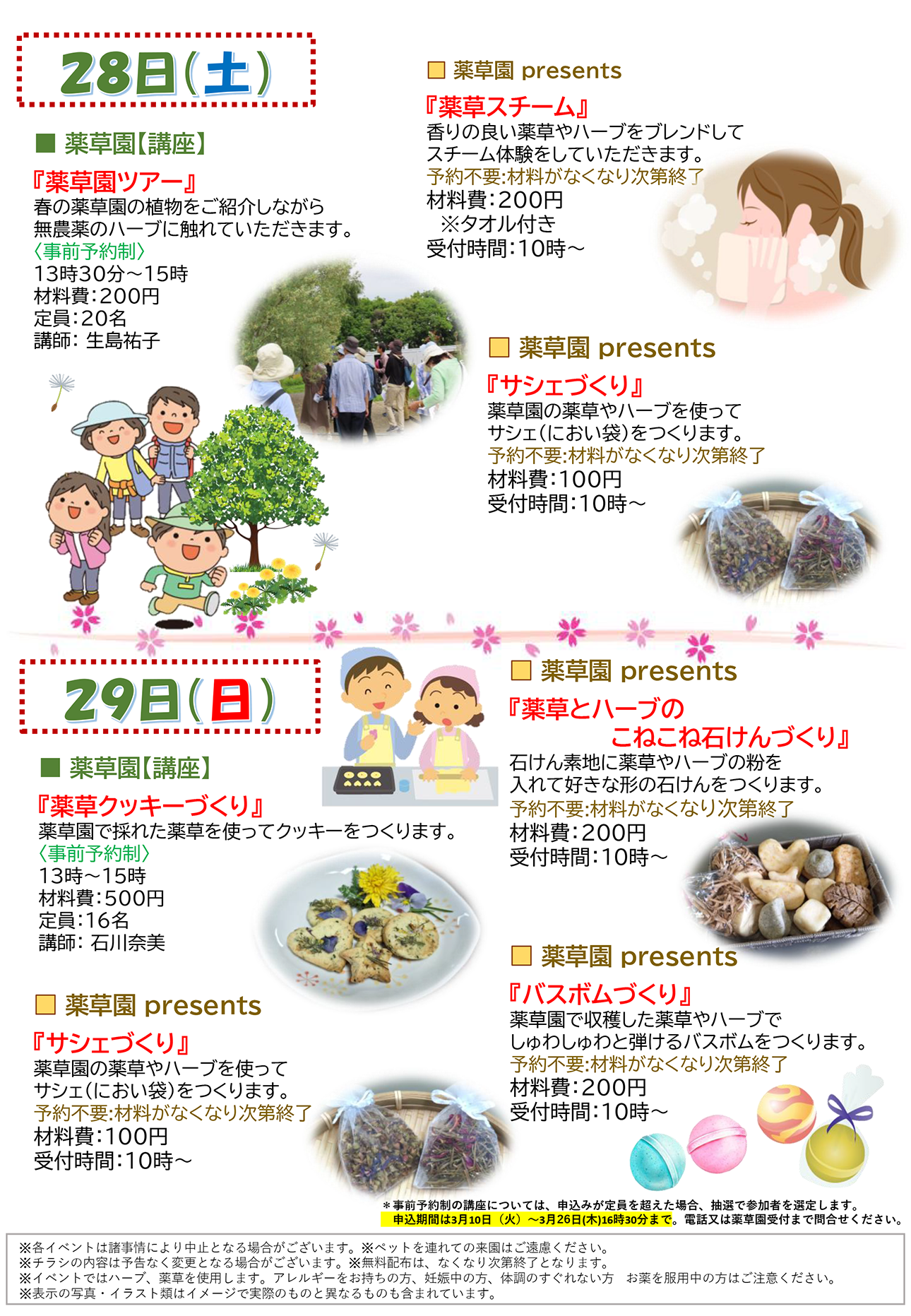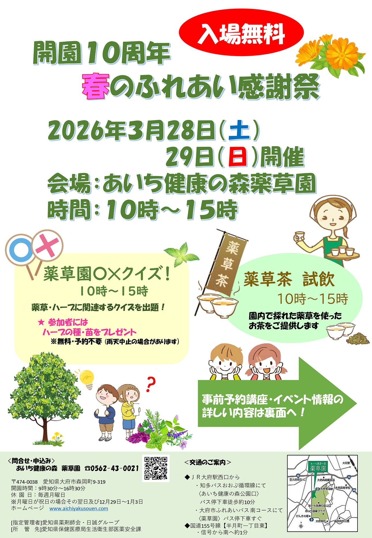 令和8年3月28日・29日に薬草園では「開園10周年記念 薬草園春のふれあい感謝祭」を開催します。